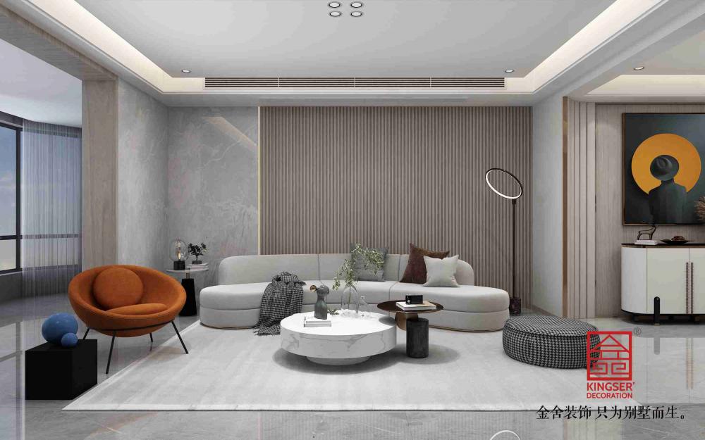 榮盛華府190平米現(xiàn)代極簡風(fēng)格裝修-客廳
