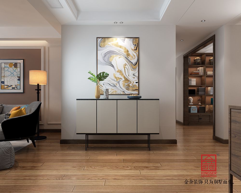 設(shè)計師萃取清雅含蓄的傳統(tǒng)中式元素,與現(xiàn)代簡約時尚的風(fēng)格相結(jié)合,將東方文化的美學(xué)融入到現(xiàn)代生活中,營造出時尚大氣又不失古典的家具空間。中式元素在空間中貫穿運用,不加修飾,質(zhì)樸,純粹,卻有一股溫暖的力量,和充滿現(xiàn)代感的元素結(jié)合,極具品味又不失美感的效果令人過目不忘。