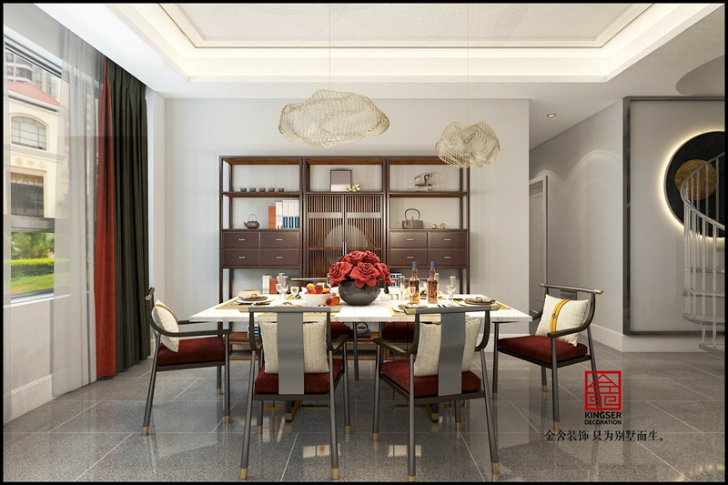 當(dāng)前位置: 首頁(yè) > 裝修案例 > 裝修圖庫(kù) > 金悅府220平米新中式裝修效果-餐廳